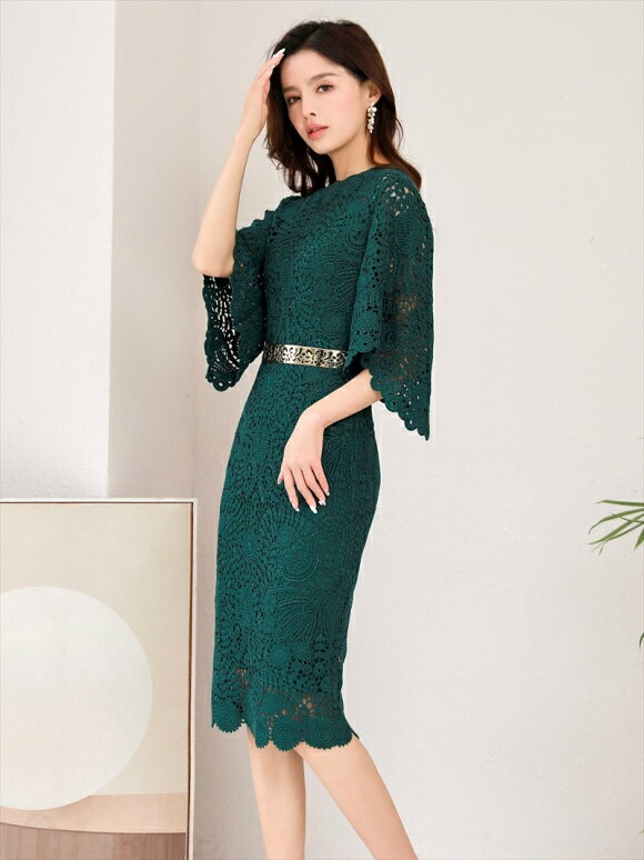 脇丈約約82cmその他■洋服の丈 ミディ丈・ミディアム丈■袖の長さ 五〜七分袖■シルエット タイト スレンダーライン■用途 カラードレス パーティードレス■テイスト エレガント セクシー フォーマル■特徴 大きいサイズ あり 新入荷商品スタッフ コメント人気タレント王雪丹氏がプロデュースするドレスブランドです。