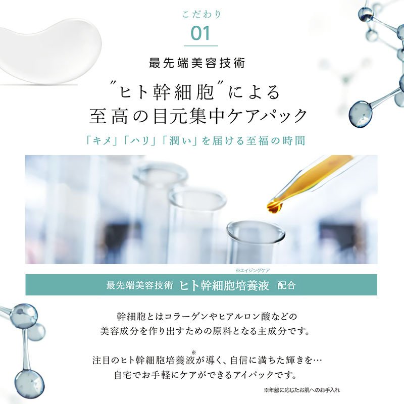 商品名HITO-KAN ヒト幹細胞 プレミアムアイシート[3個までネコポス対象] HITO-KAN HUMAN STEM CELL PREMIUM EYE SHEET内容量60枚入商品区分化粧品(スキンケア・フェイスマスク)お悩みくすみ、くろずみ、シミ、そばかす たるみ、小じわ、はり肌質乾燥肌、オイリー肌、敏感肌、普通肌成分水、グリセリン、DPG、ソルビトール、BG、ヒト幹細胞順化培養液、トリ(カプリル/カプリン酸)グリセリル、水添レシチン、1,2−ヘキサンジオール、ポリソルベート80、カプリリルグリコール、ヒアルロン酸アスコルビルプロピル、酢酸トコフェロール、カプリロイルジペプチド−17、ヒト遺伝子組換オリゴペプチド-1、水溶性プロテオグリカン、ヒアルロン酸Na、水溶性コラーゲン、プラセンタエキス、グリコシルトレハロース、加水分解水添デンプン、ベタイン、PCA−Na、セリン、グリシン、グルタミン酸、アラニン、リシン、アルギニン、トレオニン、プロリン、キサンタンガム、クエン酸Na、クエン酸、メチルパラベン、フェノキシエタノール生産国日本公告文責シー&エスジャパン株式会社元気のない目元に ヒト幹細胞アイシート 目元シート アイマスク ヒト幹細胞培養液 涙袋 目元集中ケア アイパック ヒト幹細胞 プレミアム アイシートマスク 60枚入り ・ 最先端美容技術により培養されたヒト幹細胞エキスを配合したアイシートマスクです。
