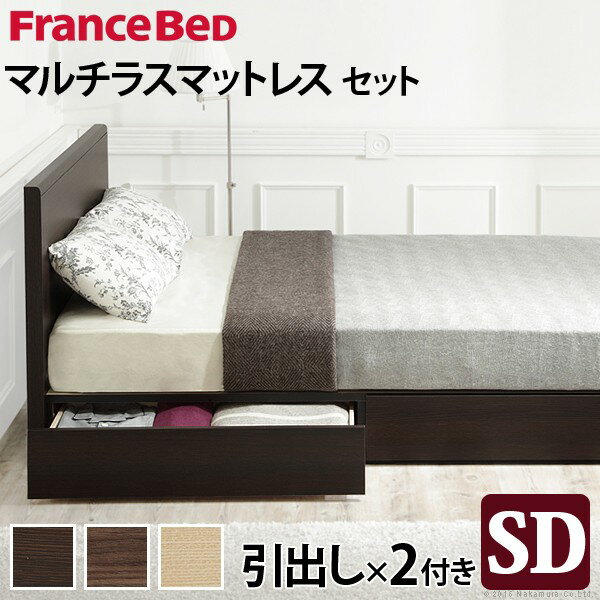 8/19 20:00〜39ショップ買い回り期間当店P3倍★ フランスベッド セミダブル 収納 フラットヘッドボードベッド 〔グリフィン〕 引出しタイプ セミダブル マルチラススーパースプリングマットレスセット 収納ベッド 引き出し付き 木製 日本製 マットレス付き