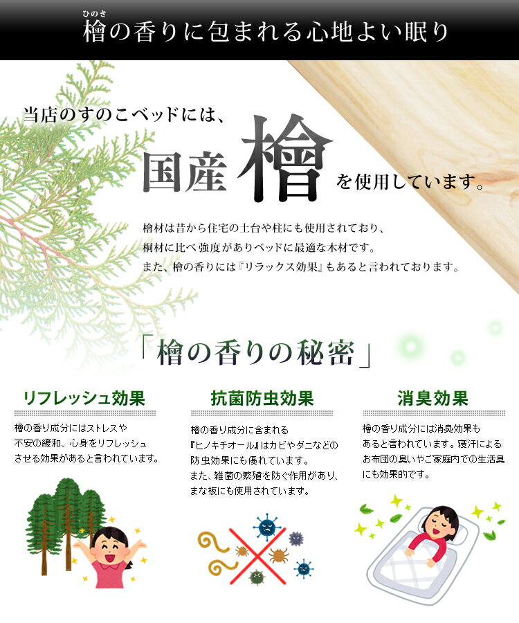 すのこベッド 二つ折り式 檜仕様 シングル 涼風 ひのき すのこベット 布団が干せる ベッド シングルベッド 通気性 湿気対策 コンパクト 省スペース 2つ折り 木製 折り畳み おしゃれ