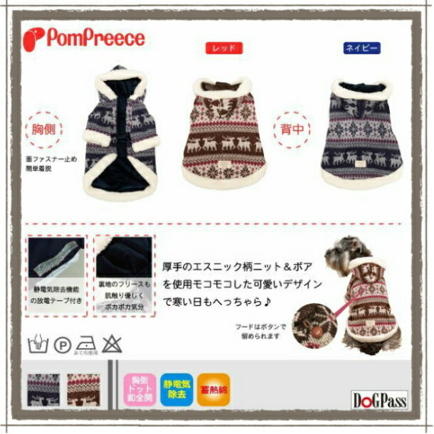 小型犬 服 エスニックジャガードコート 5号 犬服 アウター ニット&ボアパーカー ドッグウェア
