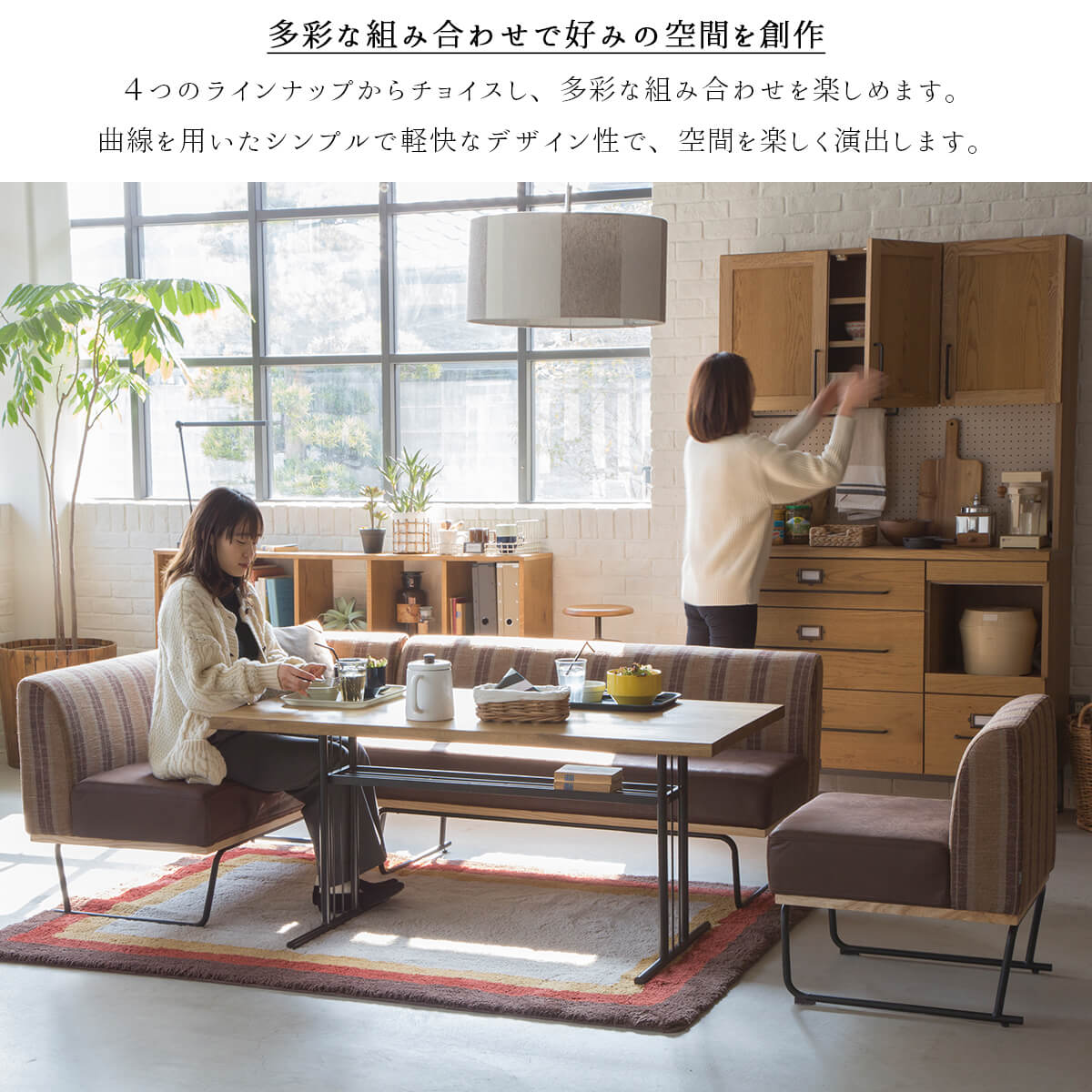 サイズベンチ 幅 130×奥行 40×高さ 42(cm)素材/材質張地:レザーテックス ファブリック 本体:アッシュ材 脚部:スチール特徴LDダイニングベンチです。
