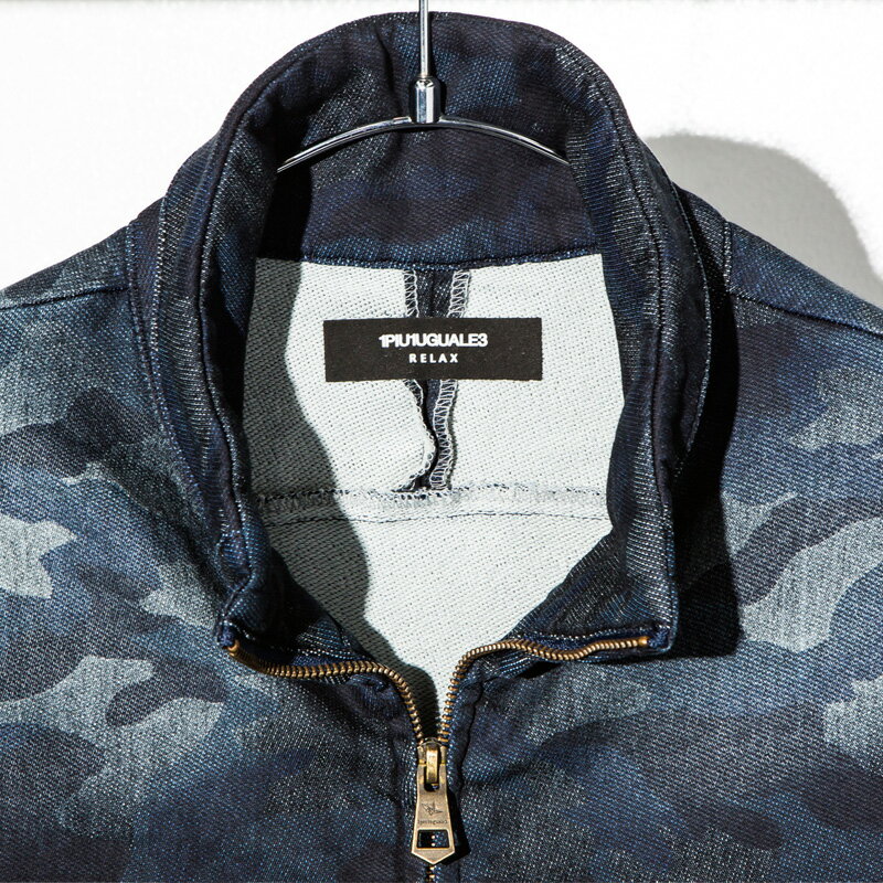 1PIU1UGUALE3 RELAX ウノピゥウノウグァーレトレ USO-703 JOGGER SWEAT DENIM SETUP TOPS カモフラージュ柄 ジョグ スウェットデニム セットアップ トップス トラックジャケット INDIGO ダークインディゴ 迷彩 綿 アパレル 服 サイズ S M 送料無料