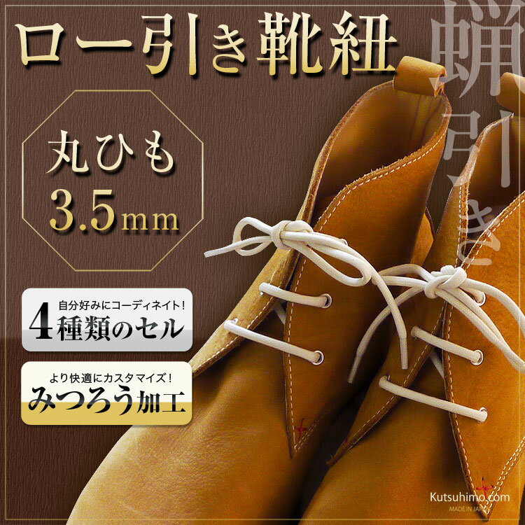 コメント50色のカラーバリエーションのロー引きの靴紐、革靴に向いている太さの3.5mm幅の靴ひもです。
